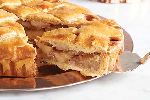 Grandioso pie de manzana relleno con abundantes trozos de manzana fresca con especias, limón y canela. Ideal para acompañar con helado de vainilla Cascabel. Este producto se despacha a Bogotá únicamente, en caja de cartón Cascabel. Nuestros postres se elaboran con productos naturales y no utilizamos conservantes. Este postre tiene una vida útil de 4 días.