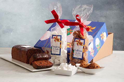 Esta ancheta es un regalo perfecto para ofrecer diferentes productos y todos exquisitos. En la ancheta viene 1 ponqué de ciruela de 300 gramos (aproximadamente 4 porciones), 1 bolsa con galletas de chocochips por 100 gramos y 1 bolsa con suspiros de vainilla por 30 gramos. El diseño "Ringletes" de la caja de cartón fue ilustrado para Cascabel por la artista Olga Lucía García. La caja mide 20.5x21x9 cms. Este producto se despacha a todo Colombia. Solo se puede comprar a través de la Tienda Online y en la Línea Domicilios. Nota Importante: El empaque puede variar de acuerdo a las existencias.