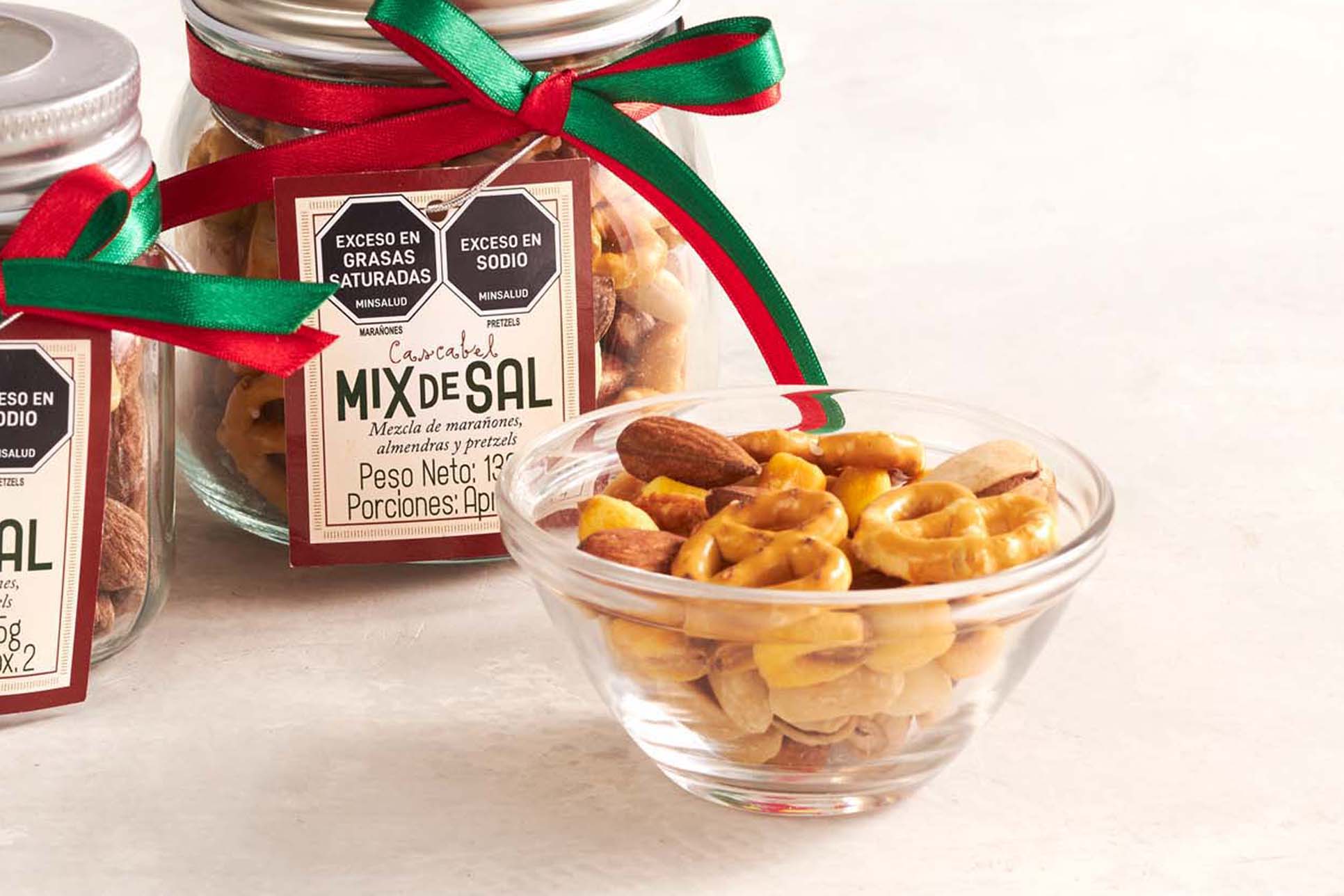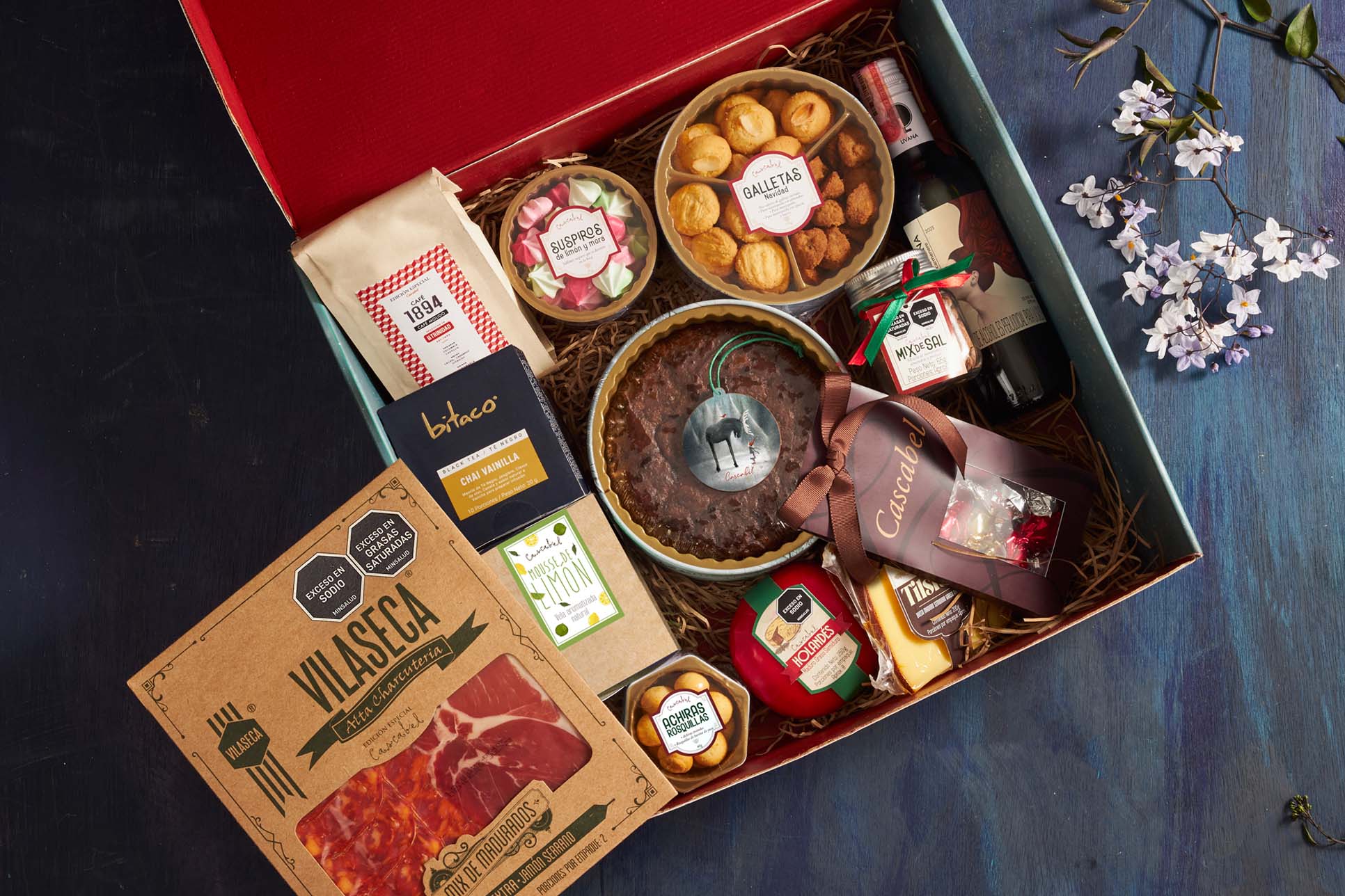 Contiene 1 ponqué de navidad premium de 750 gramos (12 porciones), 1 caja metálica con galletas surtidas de almendras y mantequilla; pura mantequilla y especias; nueces y mantequilla de navidad por 275 gramos, media botella de vino de 375 ml que puede ser tinto, rosé o blanco (tipo de vino y marca según disponibilidad de inventario),1 mix de madurados Vilaseca de 80 gramos, 1 café La Trinidad 1894 de 340 gramos, 1 queso holandés de 250 gramos, 1 queso Tilsiter de 200 gramos, 1 mix de sal en bombonera de vidrio con pretzels, marañones y almendras por 65 gramos y 1 caja de suspiros surtidos de 30 gramos, chocolates belgas, té Bitaco 10 pirámides, 1 caja metálica de achiras 40 gramos, vela aroma. La caja de cartón mide 40.6x38.5x11.8 cms. Esta ancheta solo se despacha a Bogotá.